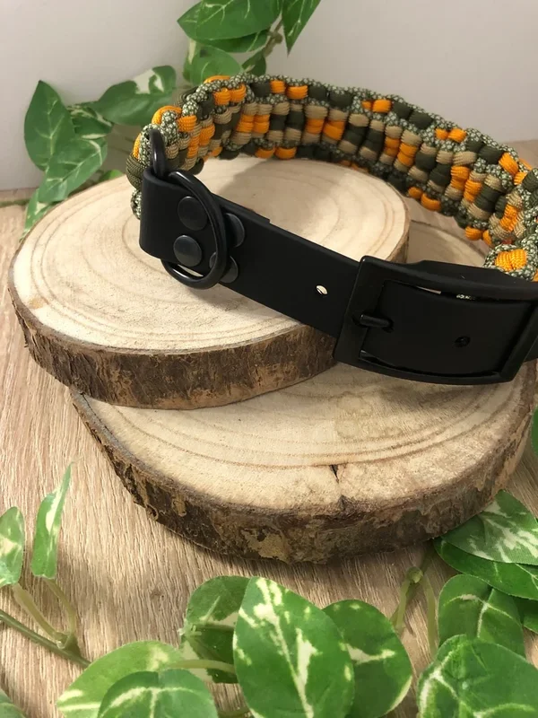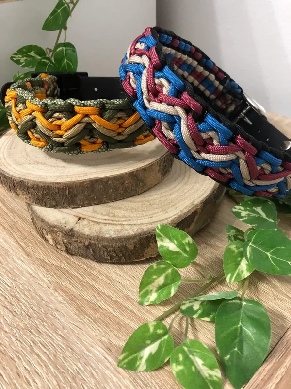 Ce collier pour chien, fabriqué en paracord de haute qualité, allie robustesse et légèreté pour un usage quotidien durable. Sa conception experte assure une résistance optimale tout en restant confortable autour du cou de votre animal. Idéal pour les promenades ou les activités en plein air, ce collier garantit sécurité et style, avec une finition soignée qui met en valeur son caractère fonctionnel et esthétique.